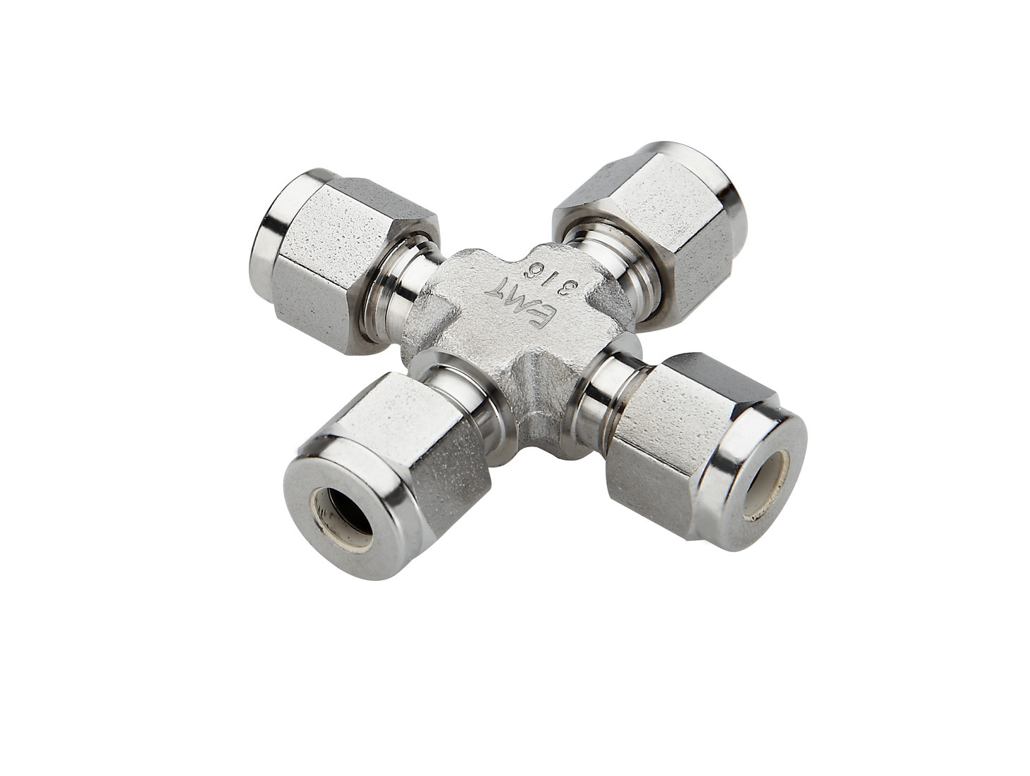 TWIN FERRULE COMPRESSION UNION CROSS FITTING