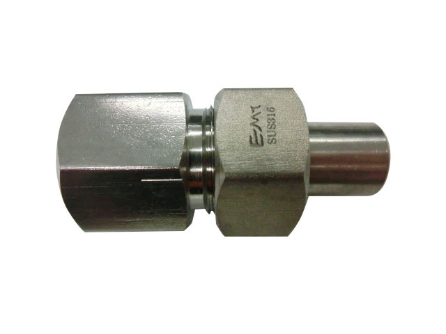 "SS" METRIC MALE X BSPT FEMALE WITH METRIC FEMALE SWIVEL X WELDING FITTING WITH RING NUT